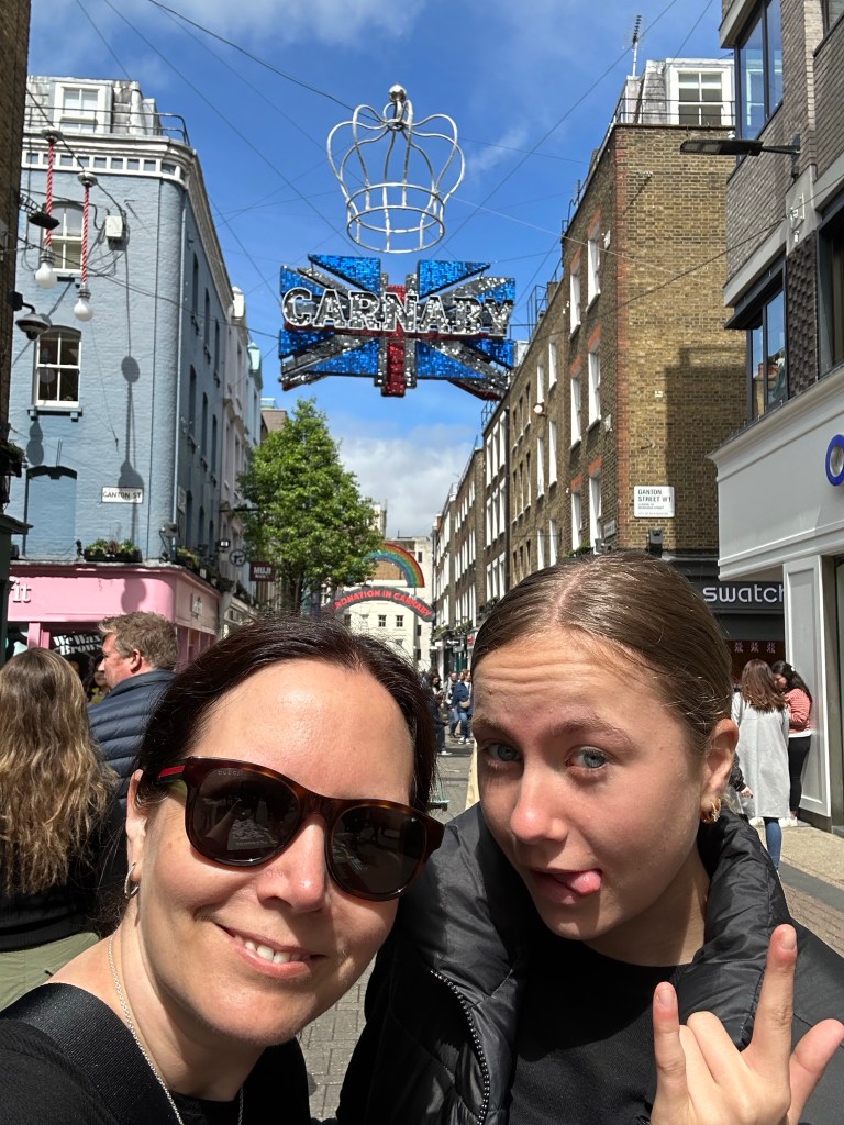 Reisegruppe Leno ESports unterwegs in London. First things First. Kaffee für Niki und Bianca. Schwer für uns in einem Kaffeelosen Haushalt. die Influenzer Hotspots haben wir abgegrast und eine Krönungsfoto war auch drin 👑